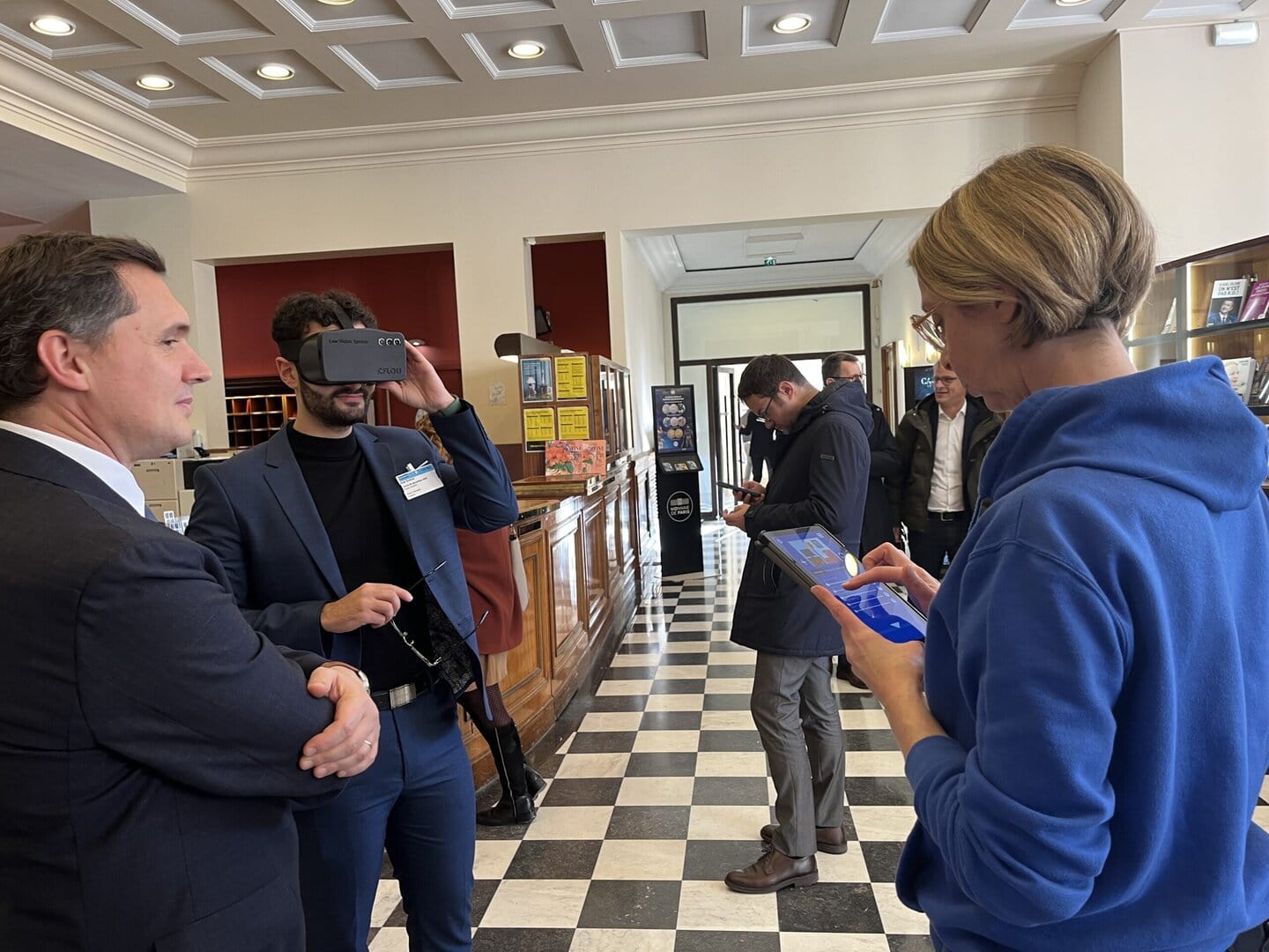 Deux stands de sensibilisation animés par l’UNADEV avec flyers, brochures, casque de réalité virtuelle, visités par une cinquantaine de personnes notamment des figures politiques clés, avec le soutien de l’AFG qui a joué un rôle clé dans le partage d’informations sur le glaucome aussi bien sur le stand et au devant de la salle de dépistage.